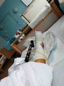 “Мені зробили операцію на правому гомілковостопному та підтаранному суглобах, видалили таранну кістку, адже вона була зруйнована. Також здійснили черезкістковий остеосинтез та встановили апарат зовнішньої фіксації та апарат Ілізарова у гомілку. Необхідно робити пластику кістки, ходити шість місяців з апаратом Ілізарова, далі з’єднуватимуть п’ятку з кісткою. Потім витягуватимуть кістки, щоб довжина ніг була однаковою”,- каже військовий.