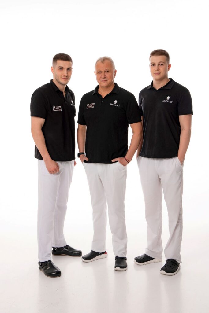 «Elite Dental» — це сімейна клініка, співзасновниками якої є Сергій та Тимофій Єрмолаєви. Сергій Єрмолаєв — стоматолог-імплантолог із 40-річним досвідом роботи. З ним працюють його сини — Тимофій та Дмитро. Тимофій навчався на стоматолога-хірурга в Києві та Полтаві. Побував у багатьох країнах світу, вивчаючи основи роботи інших провідних стоматологів. А Дмитро нещодавно закінчив навчання в Харкові й відразу доєднався до родинного бізнесу.