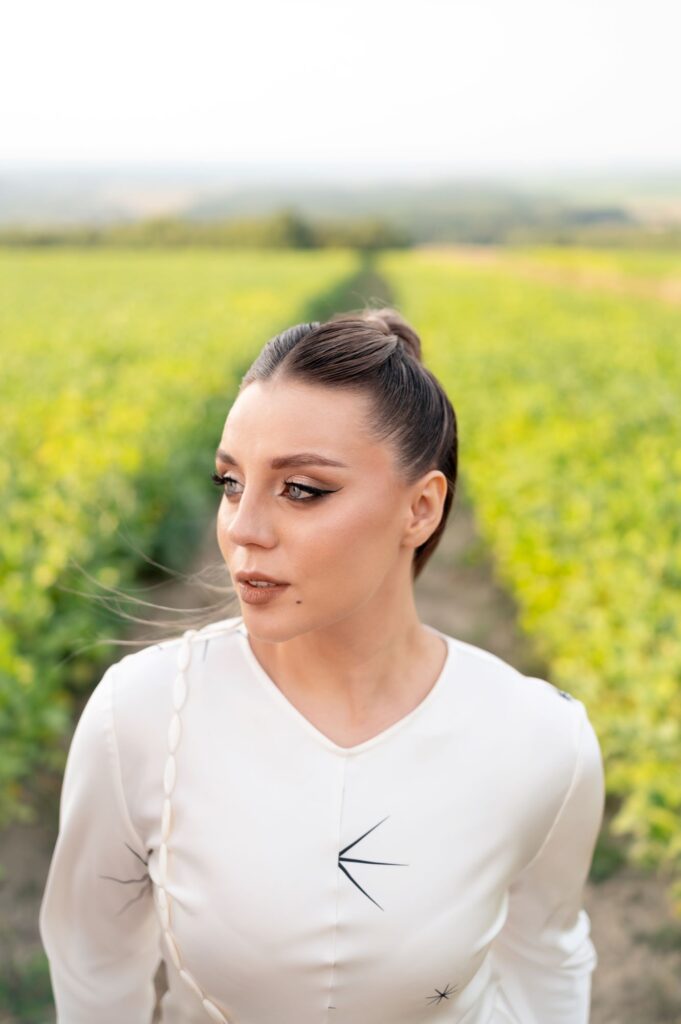 «Команда була неймовірно здивована, що я не просила перерву, знімаючись у лісі. Оскільки сосновий бір просто усіяний маленькими гілочками. Вони можуть боляче впиватися у шкіру до крові. Проте я завжди на експерименти та яскраві кадри. Тому на задачу команди пробігтися лісом босою – була тільки за. Це неймовірні емоції. Жодна гілочка не постраждала», — поділилася Соня Ориняк.