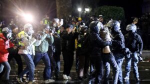 Увечері 6 грудня і вночі 7 грудня вперше за три дні спецпризначенці розганяють антиурядовий мітинг на проспекті Руставелі у Тбілісі....